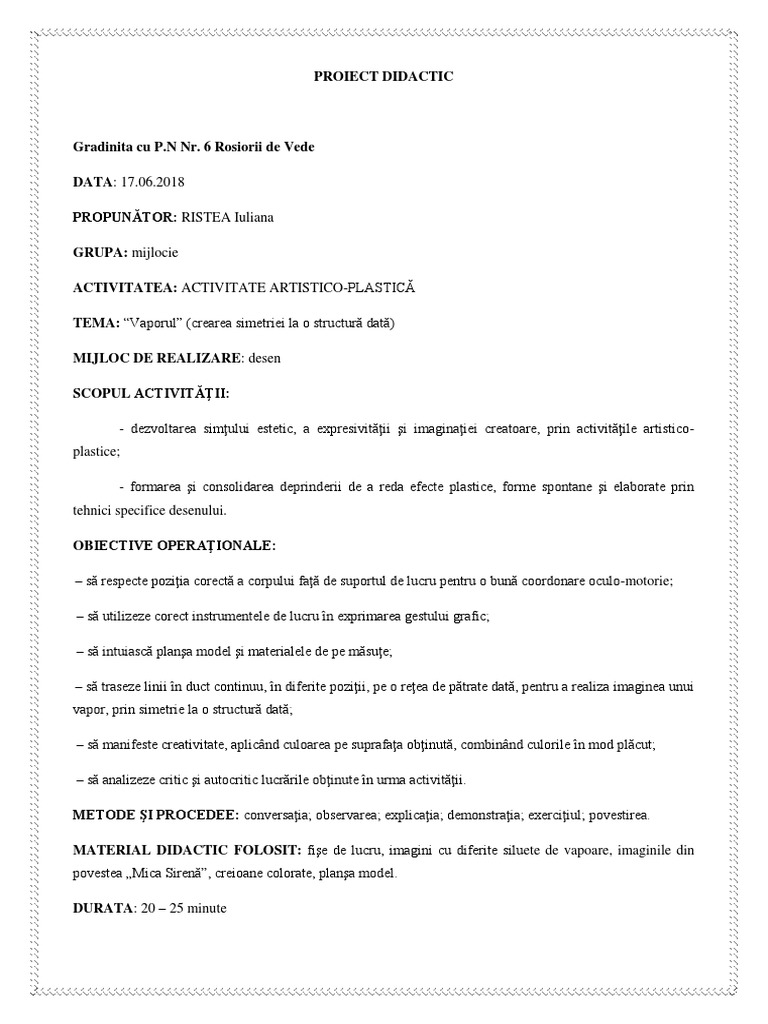 - dezvoltarea simţului estetic, a expresivităţii şi imaginaţiei creatoare, prin activităţile artistico-
