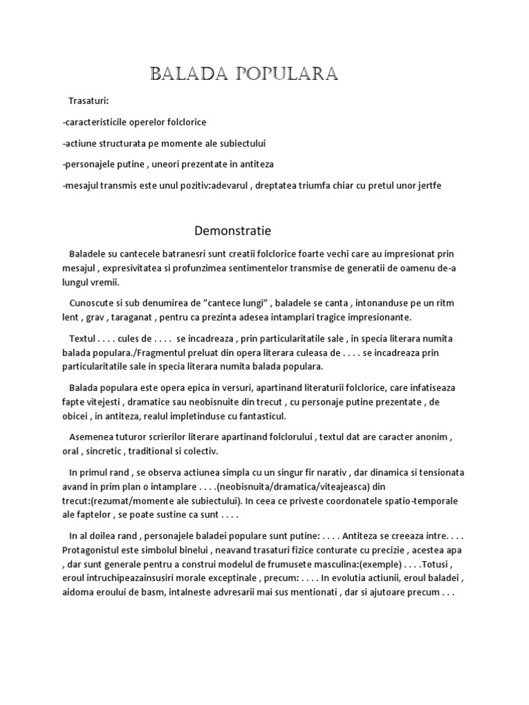 particularitatile sale in specia literara numita balada populara.
