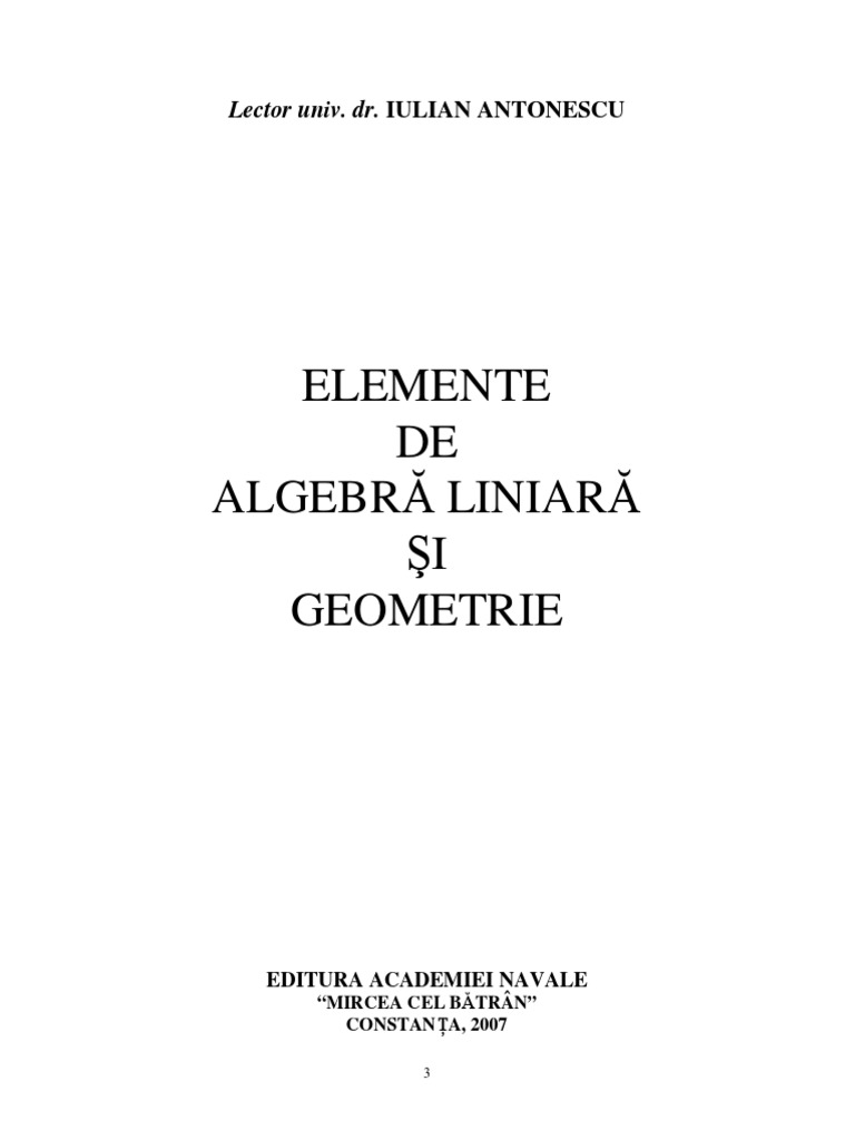 [Link], V., Elemente de algebr liniar i geometrie, Editura Didactic i Pedagogic ,