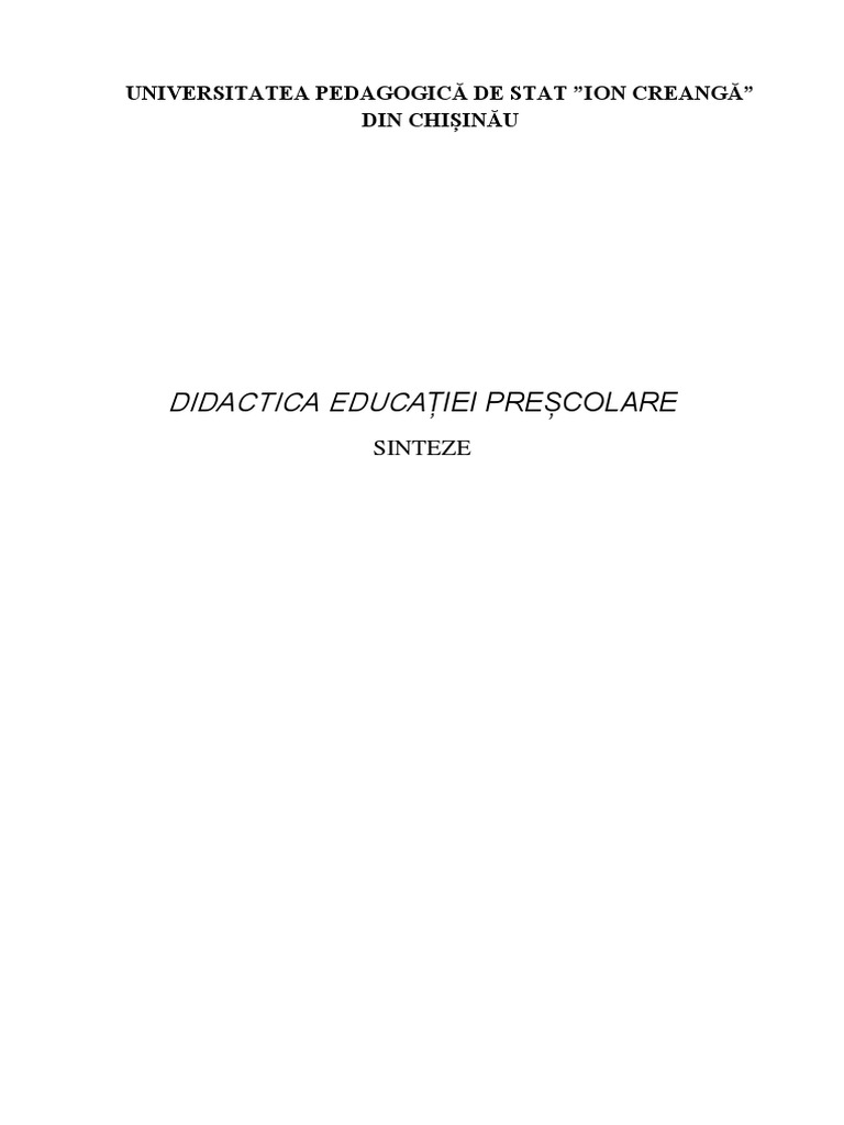 I. DIDACTICA GENERALĂ A EDUCAŢIEI PREŞCOLARE