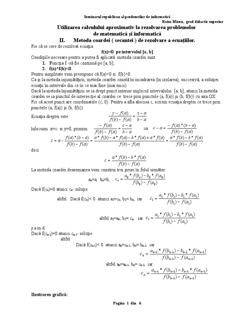 II. Metoda coardei ( secantei ) de rezolvare a ecuaţiilor.