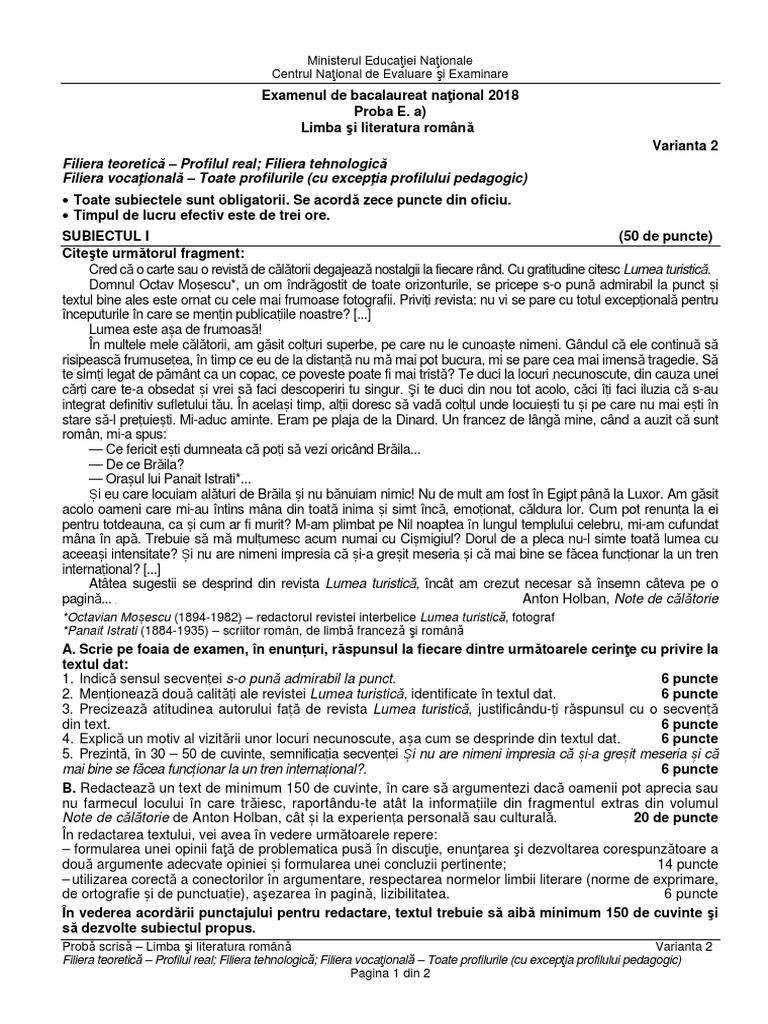În vederea acordării punctajului pentru redactare, răspunsul trebuie să aibă minimum 50 de cuvinte