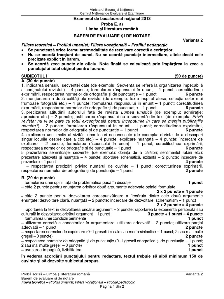 greşeli ortografice – 1 punct; 2 sau mai multe greșeli – 0 puncte); punctuaţia – 1 punct (0–1 greşeli