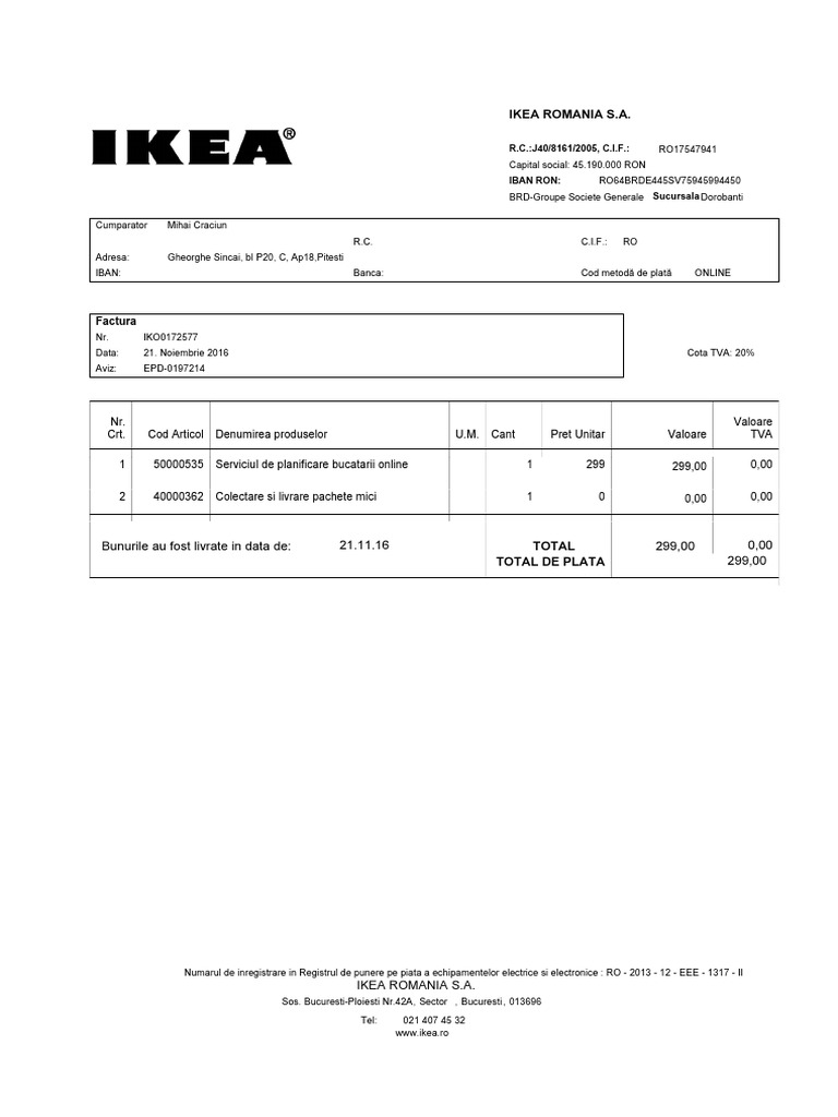 Data: 21. Noiembrie 2016 Cota TVA: 20%