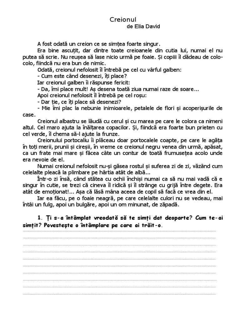 Apoi creionul nefolosit îl întrebă pe cel roșu: