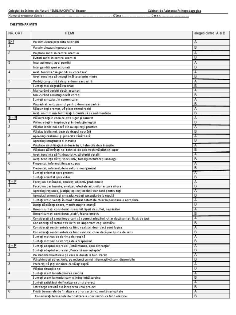 CHESTIONAR MBTI