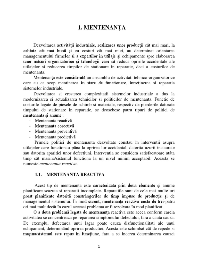presupune planificarea reparatiilor, lubrificarii, ajustarilor, reconditionarii pentru