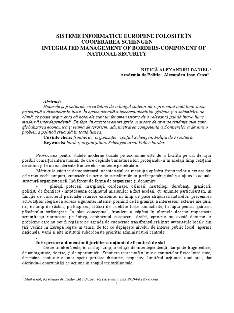 Cuvinte cheie: frontiera , organizație , spațiul Schengen, Poliția de Frontieră.