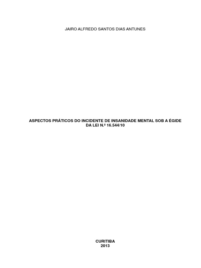 ASPECTOS PRÁTICOS DO INCIDENTE DE INSANIDADE MENTAL SOB A ÉGIDE DA LEI N.º 16.544/10