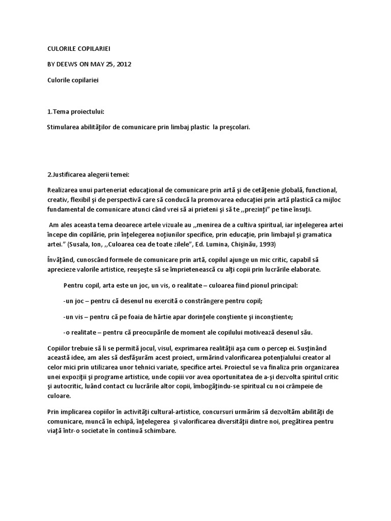 această idee, am ales să desfăşurăm acest proiect, urmărind valorificarea potenţialului creator al