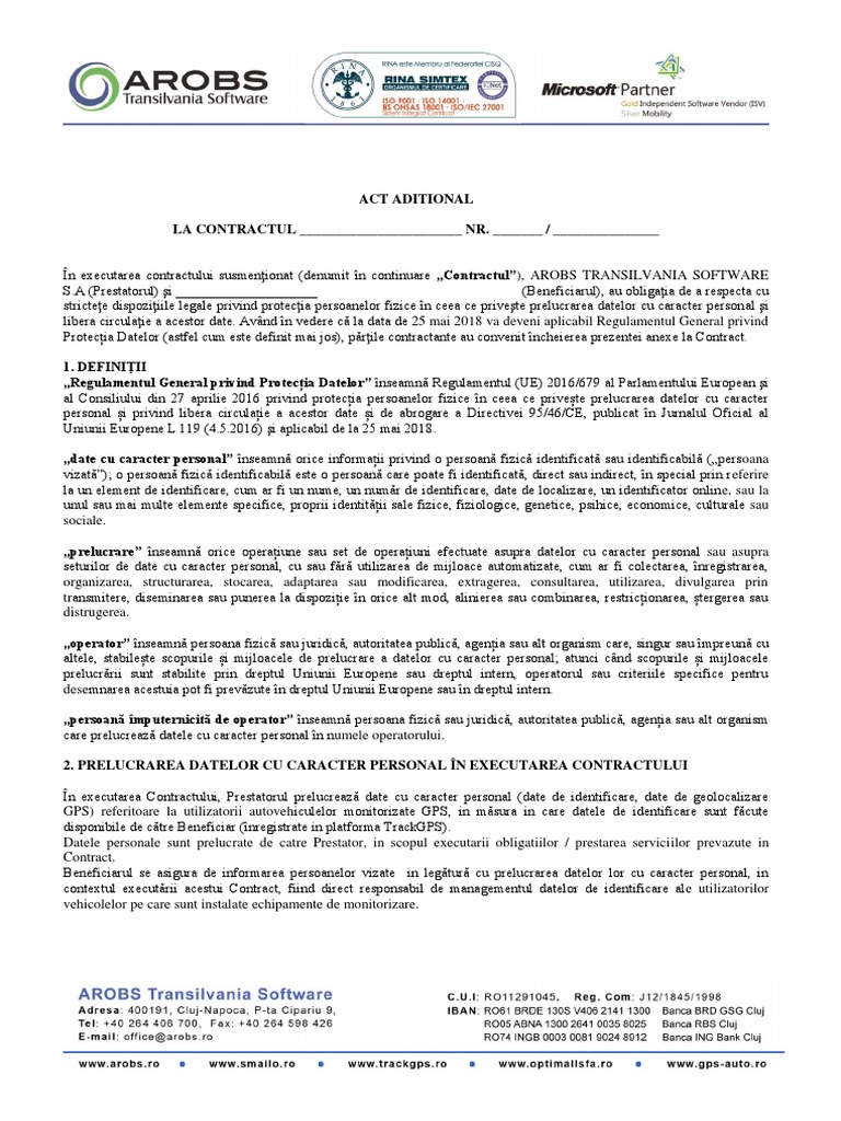 În executarea contractului susmenţionat (denumit în continuare „Contractul”), AROBS TRANSILVANIA SOFTWARE