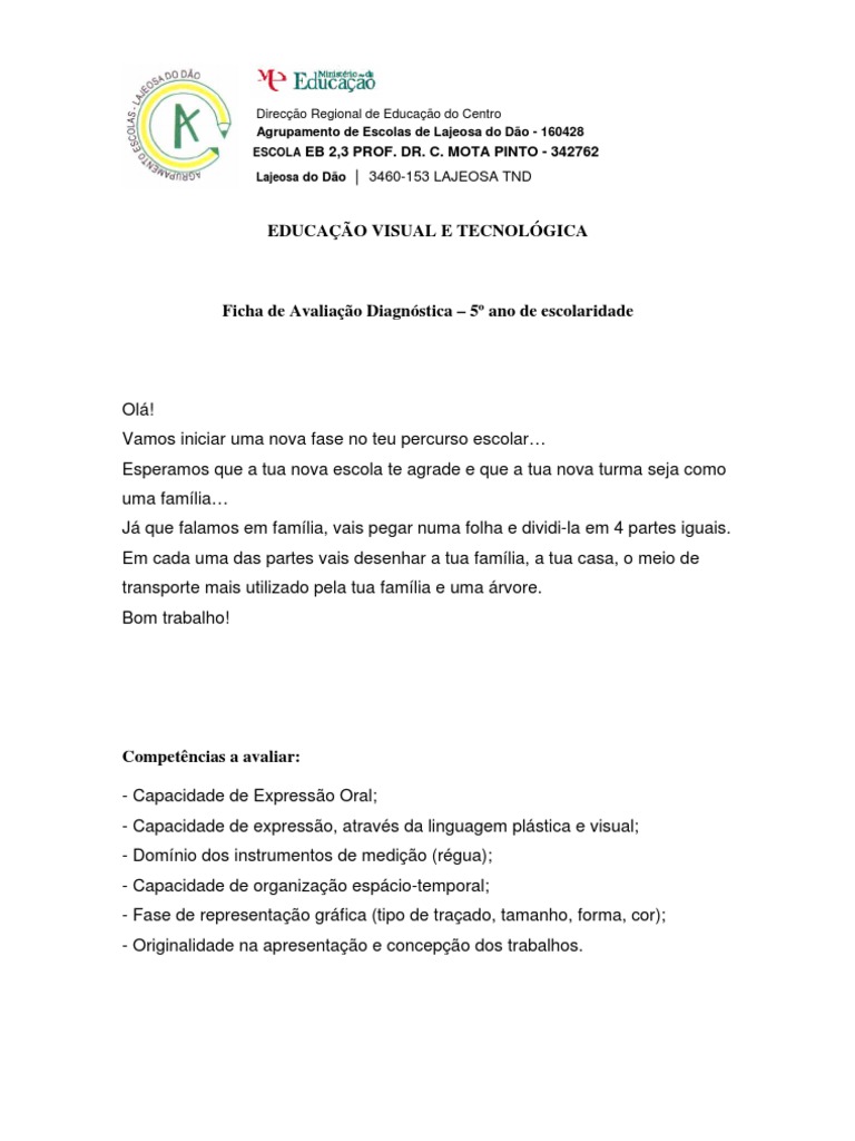 Ficha de Avaliação Diagnóstica – 5º ano de escolaridade