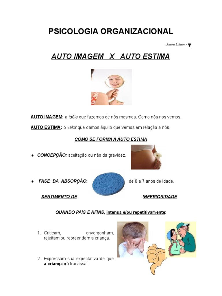 AUTO ESTIMA: o valor que damos àquilo que vemos em relação a nós.