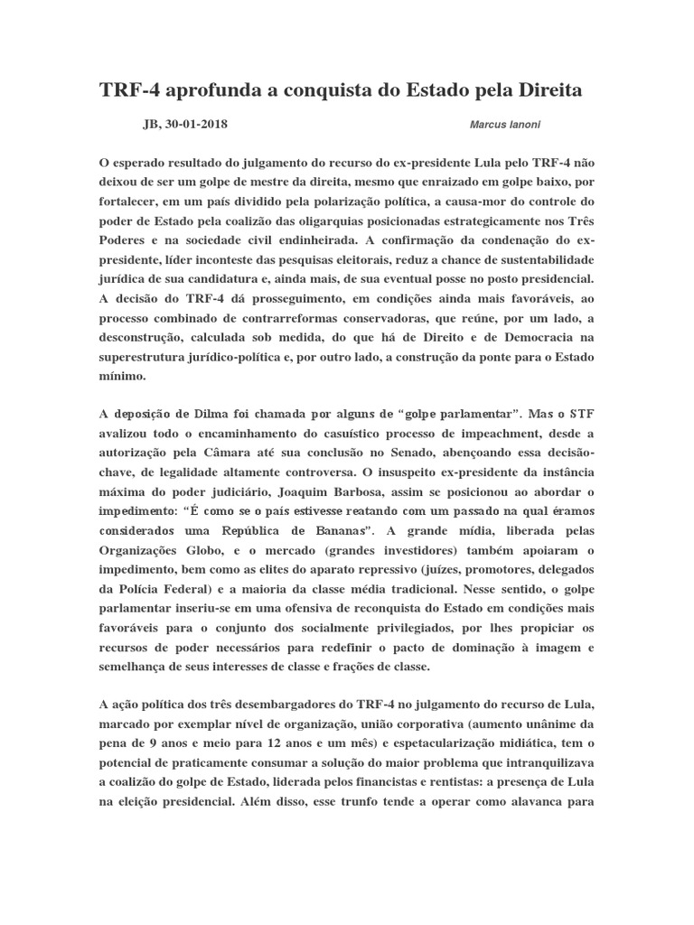 da Polícia Federal) e a maioria da classe média tradicional. Nesse sentido, o golpe