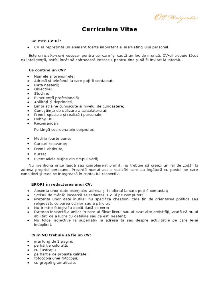 Este un instrument necesar pentru cei care îşi caută un loc de muncă. CV-ul trebuie făcut