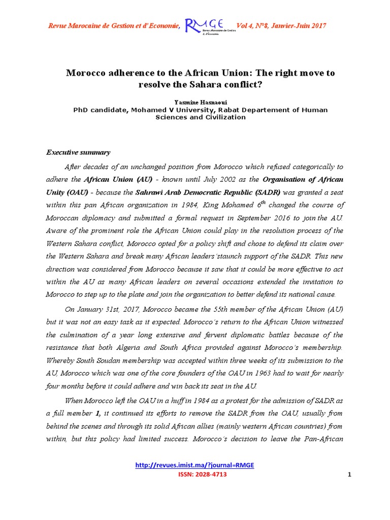 This paper will examine Morocco’s fundamental reasons for acceding to the African