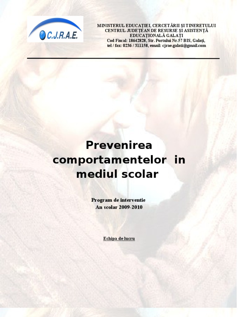 liceal având comportamente violente . Mărimea grupului va fi cuprinsă între 10-15 elevi.