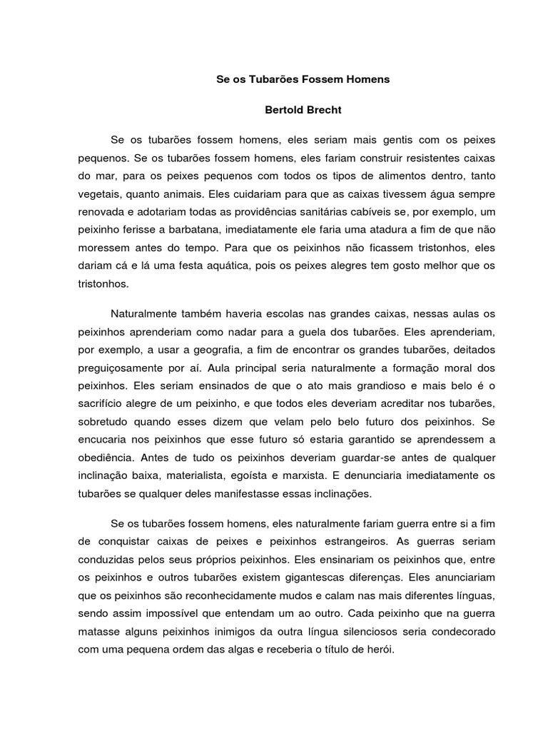 Se os tubarões fossem homens, haveria entre eles naturalmente também uma