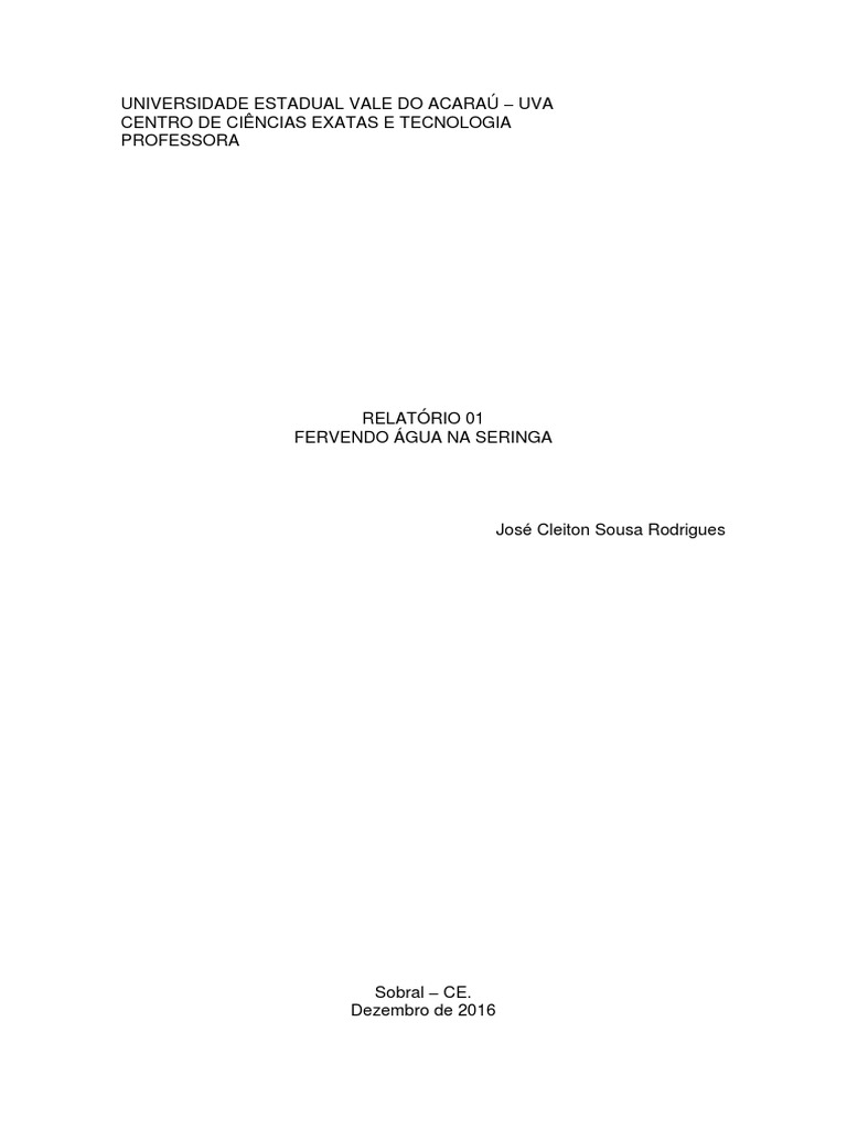 atmosférica igual a 1 atm) é igual a 100ºC. No entanto, se fervermos a água em