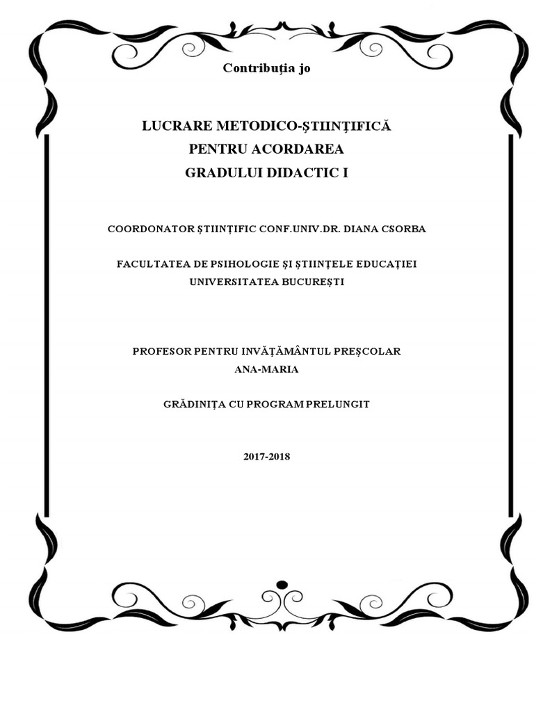 LUCRARE METODICO-ŞTIINŢIFICĂ