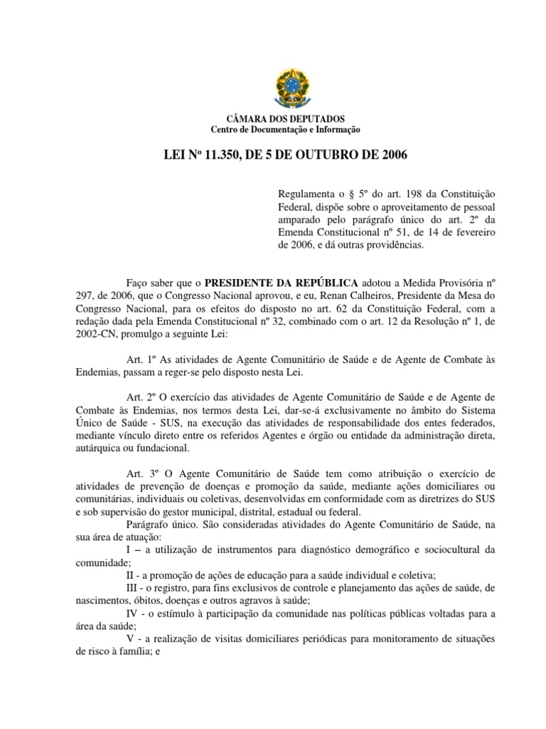 LEI Nº 11.350, DE 5 DE OUTUBRO DE 2006