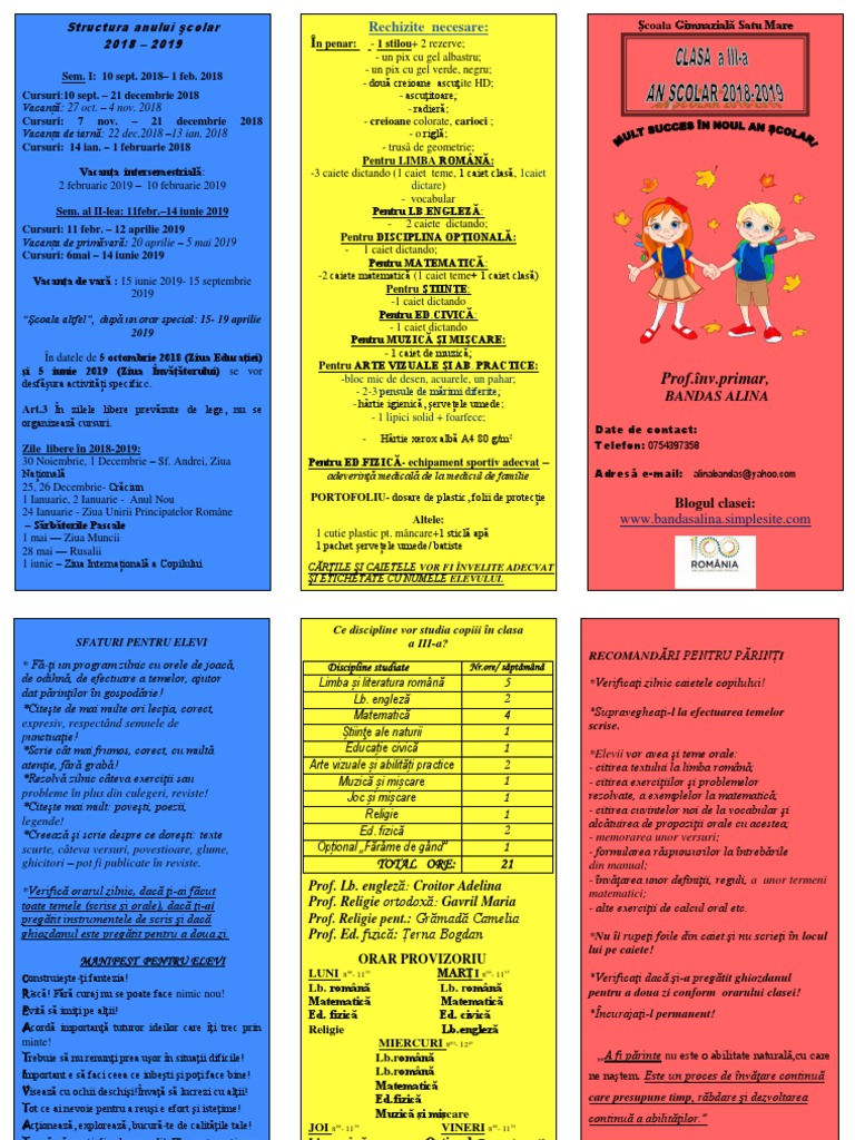 Structura anului şcolar Rechizite necesare: Şcoala Gimnazială Satu Mare