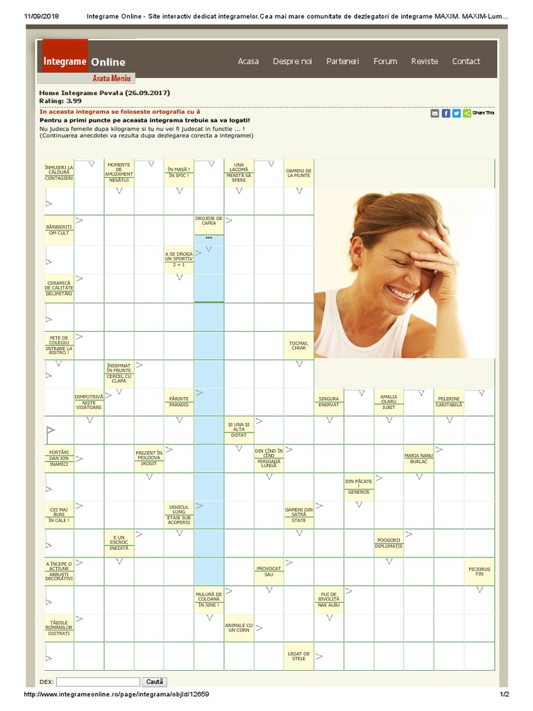 11/09/2018 Integrame Online - Site interactiv dedicat [Link] mai mare comunitate de dezlegatori de integrame MAXIM.