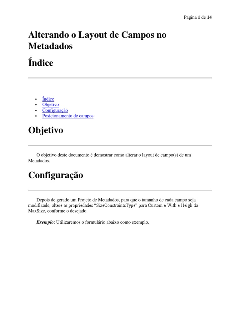 Depois de gerado um Projeto de Metadados, para que o tamanho de cada campo seja