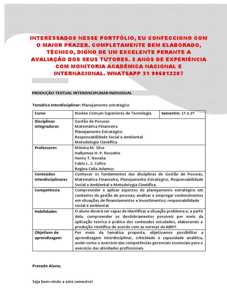 interdisciplinares Matemática Financeira, Planejamento Estratégico, Responsabilidade