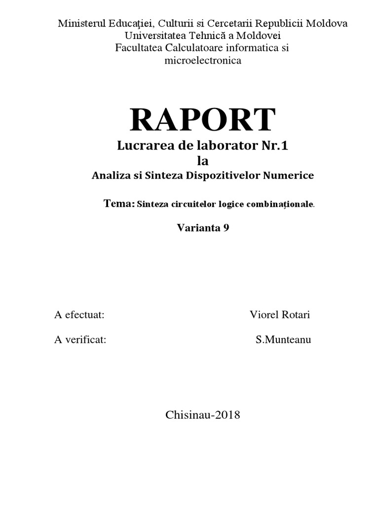 procesului de sinteză a circuitelor logice combinaţionale. Mai mult decît atît am făcut