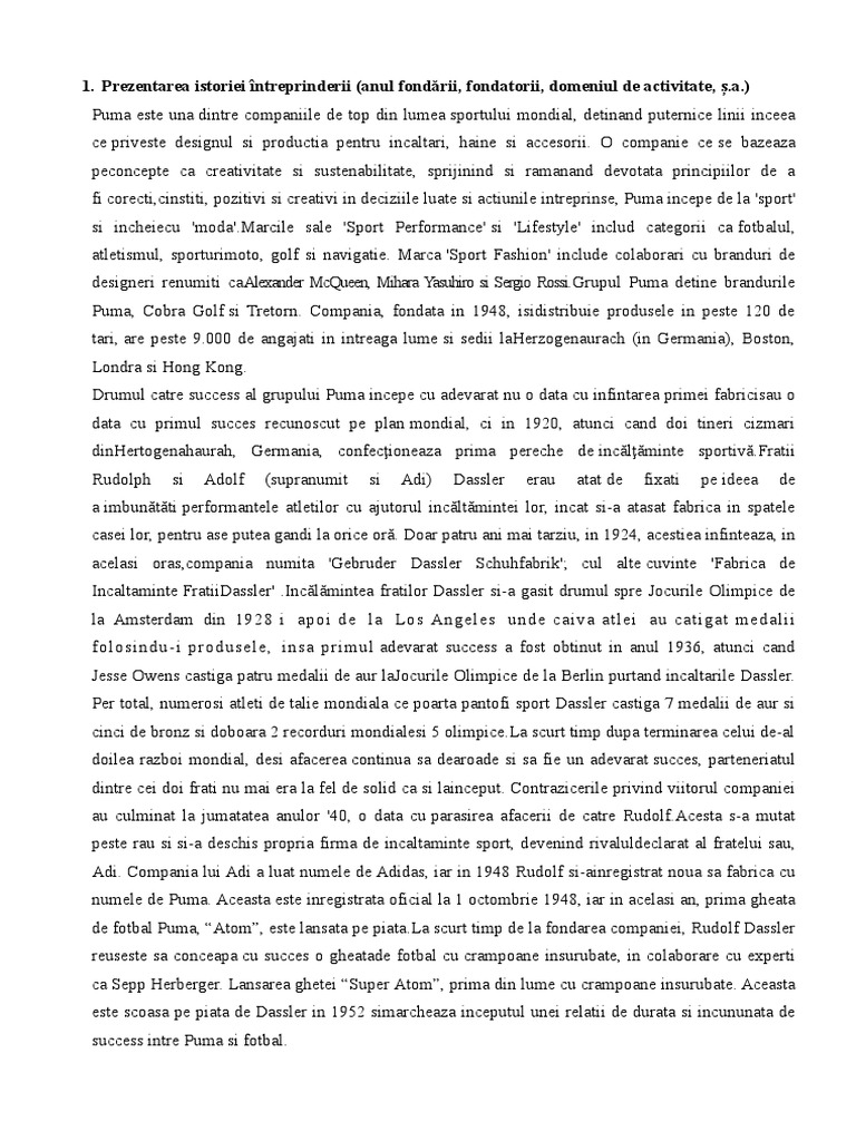 1. Prezentarea istoriei întreprinderii (anul fondării, fondatorii, domeniul de activitate, ș.a.