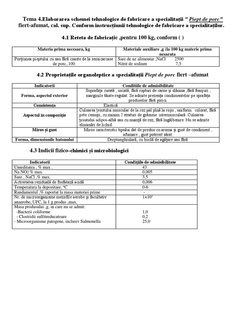 Elaborarea schemei tehnologice de fabricare a specialitații ʺ Piept de porcʺ