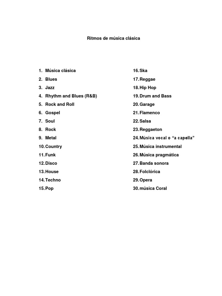 1. Música clásica 16. Ska