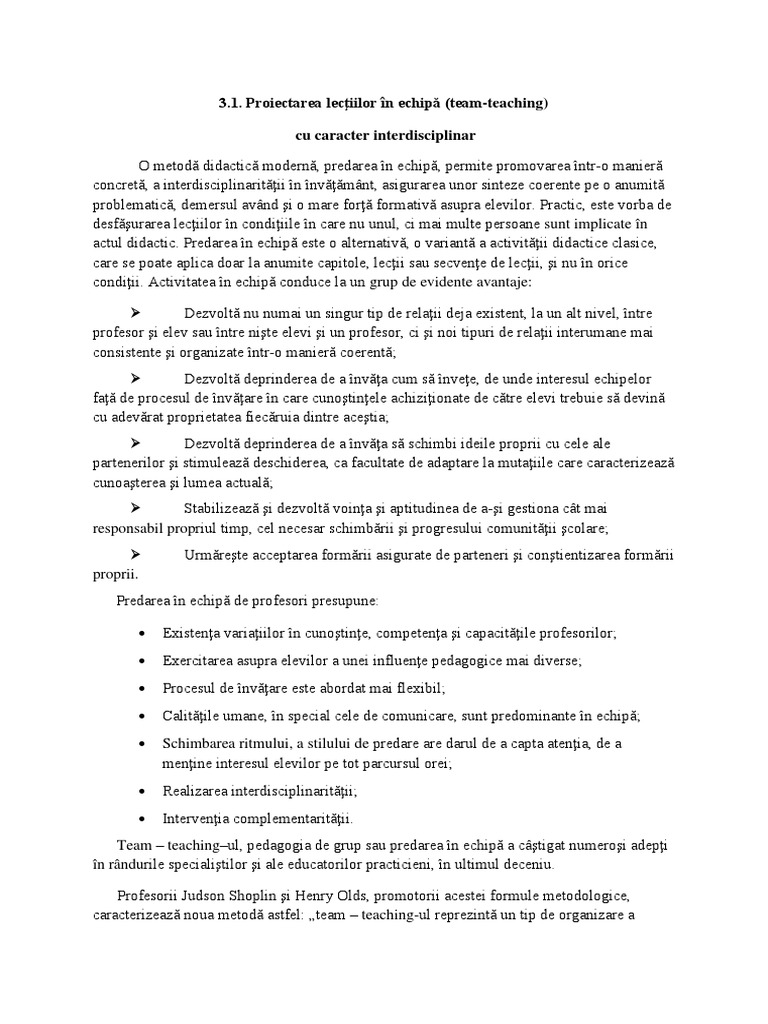 Proiectarea lecţiilor în echipă (team-teaching)