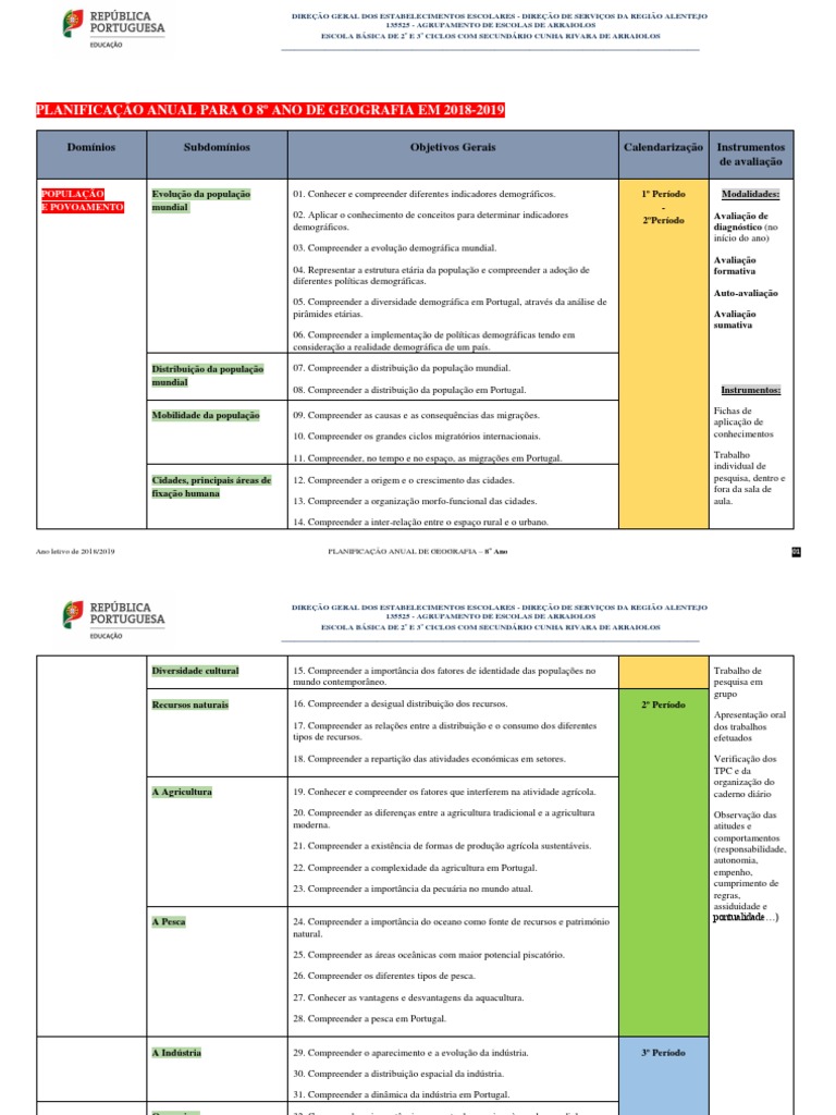 PLANIFICAÇÃO ANUAL PARA O 8º ANO DE GEOGRAFIA EM 2018-2019