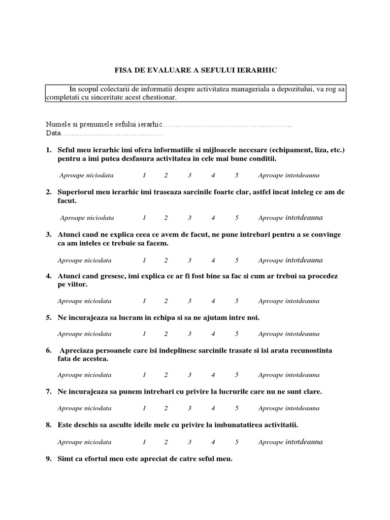 FISA DE EVALUARE A SEFULUI IERARHIC