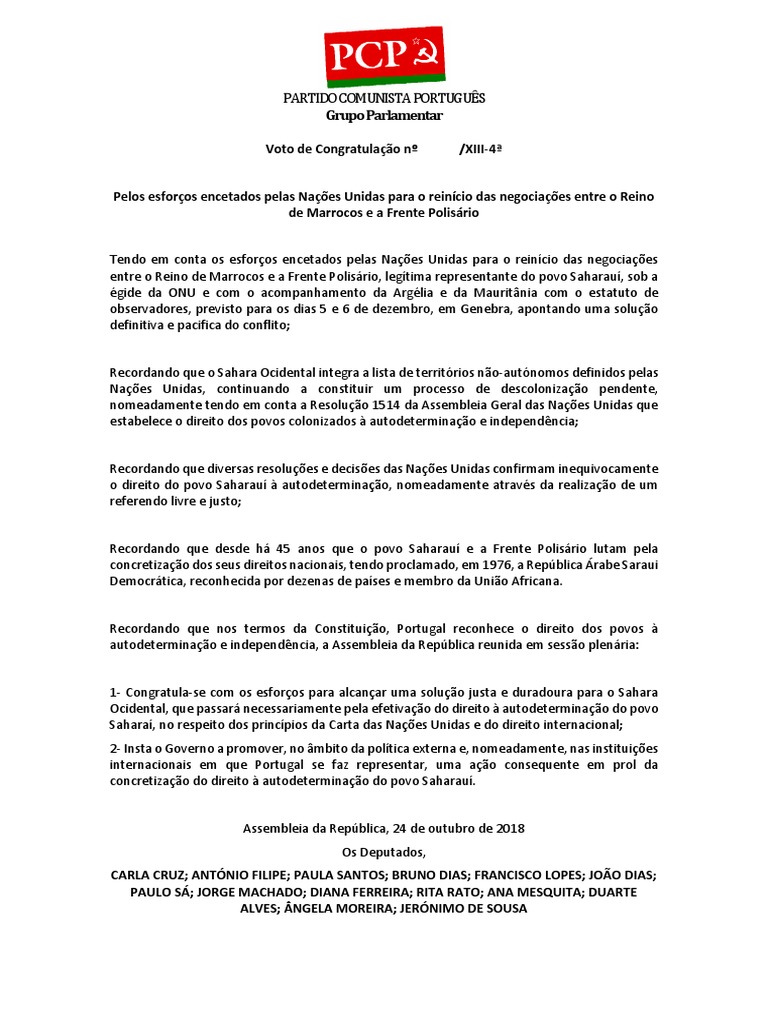 entre o Reino de Marrocos e a Frente Polisário, legítima representante do povo Saharauí, sob a