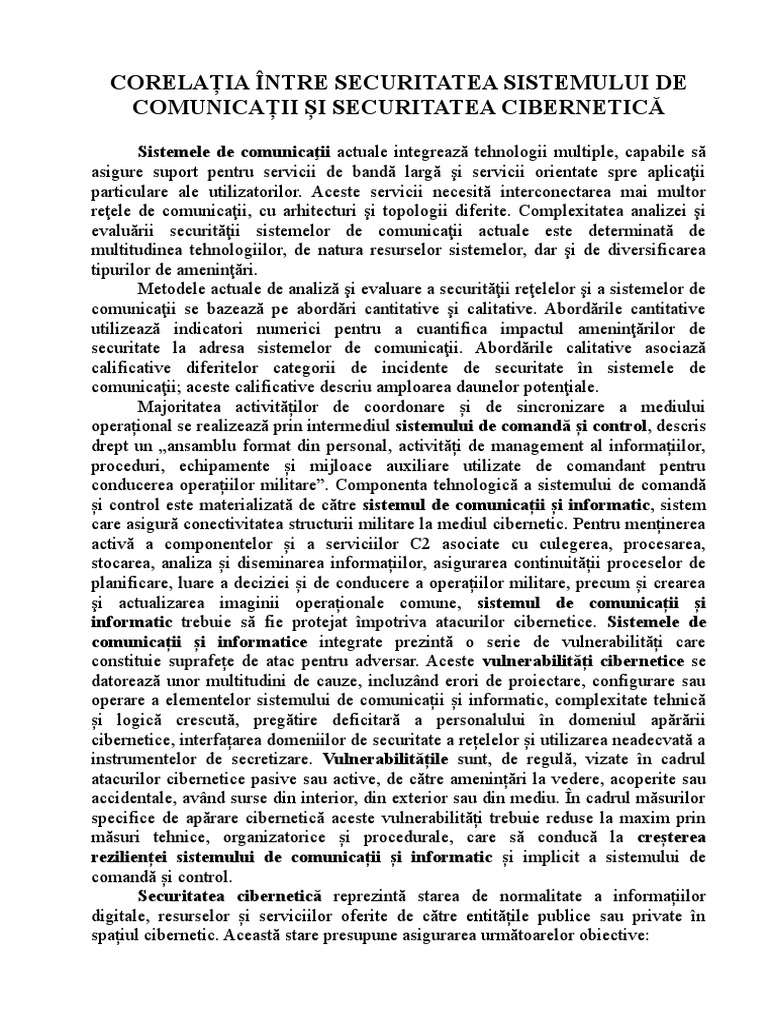 COMUNICAȚII ȘI SECURITATEA CIBERNETICĂ