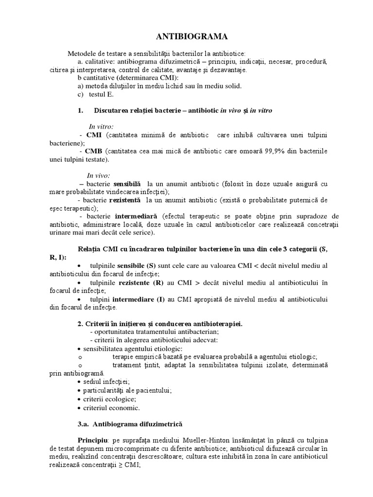 a. calitative: antibiograma difuzimetrică – principiu, indicaţii, necesar, procedură,