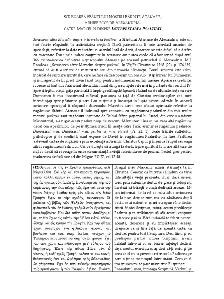 (12) Ἄγαµαί σε τῆς ἐν Χριστῷ προαιρέσεως, φίλε Dragul meu Marcelin, admir stăruința ta în