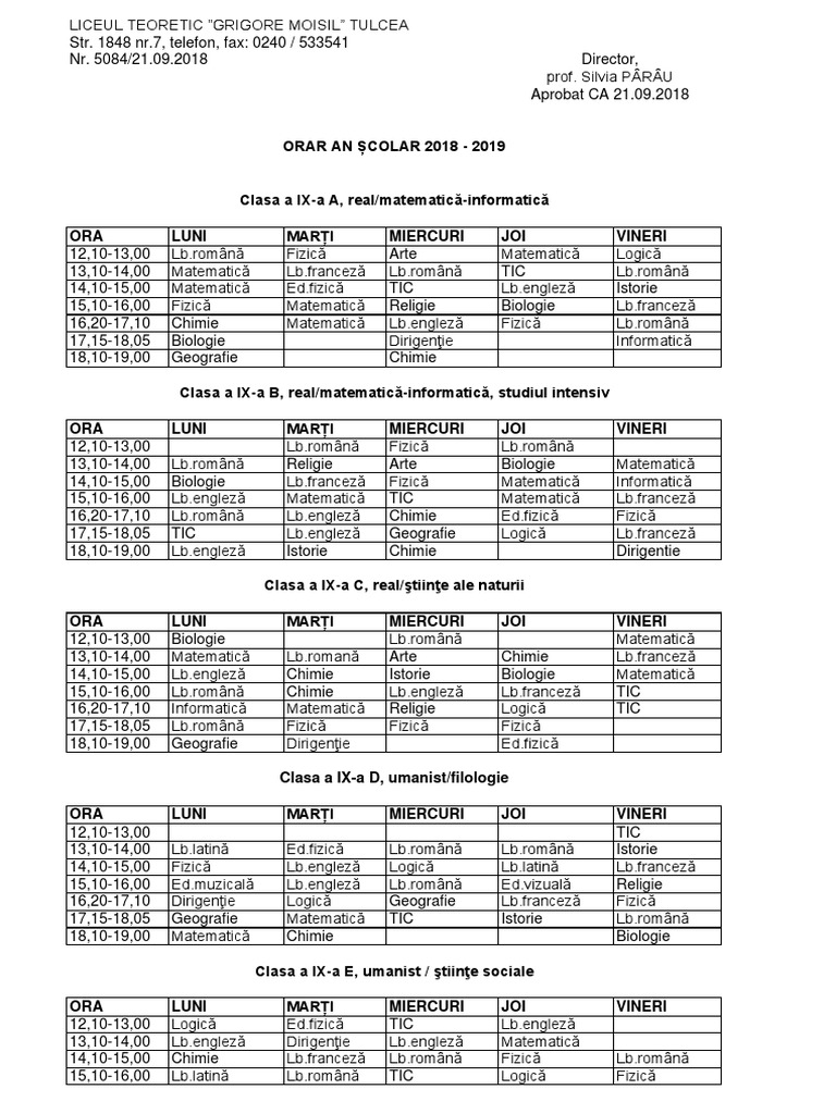 14,10-15,00 Biologie [Link]ă Fizică Matematică Informatică