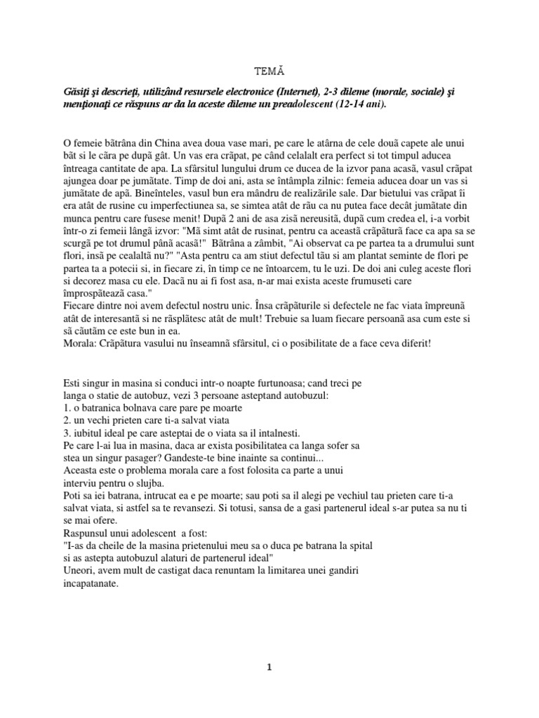 Găsiţi şi descrieţi, utilizând resursele electronice (Internet), 2-3 dileme (morale, sociale) şi