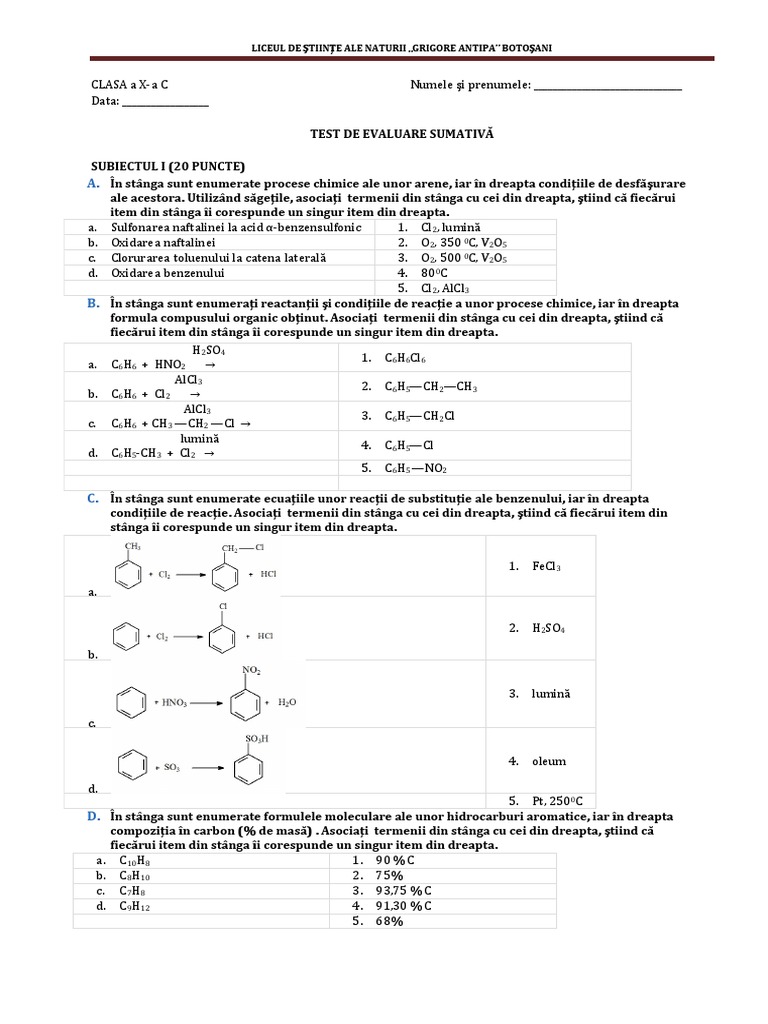 CLASA a X-a C Numele şi prenumele: _______________________________
