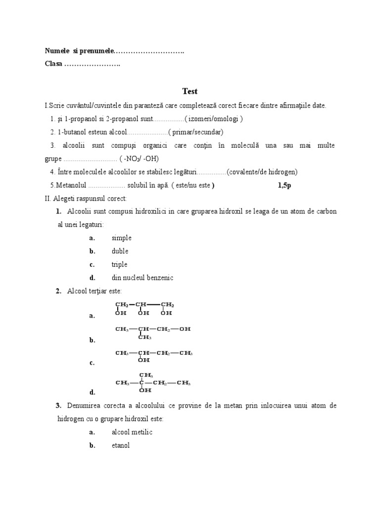 3. alcoolii sunt compuşi organici care conţin în moleculă una sau mai multe