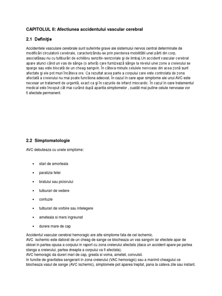 CAPITOLUL II: Afectiunea accidentului vascular cerebral