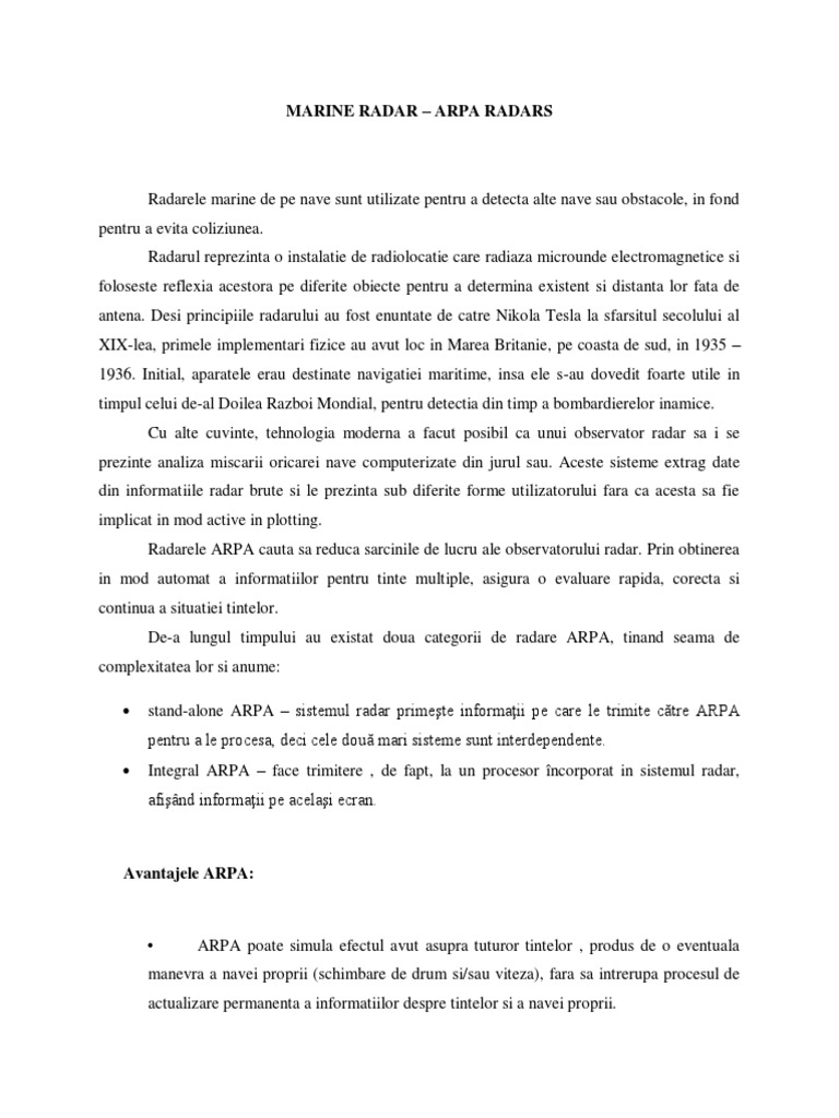 facilitătile oferite de sistemele moderne ARPA in navigatia maritima.