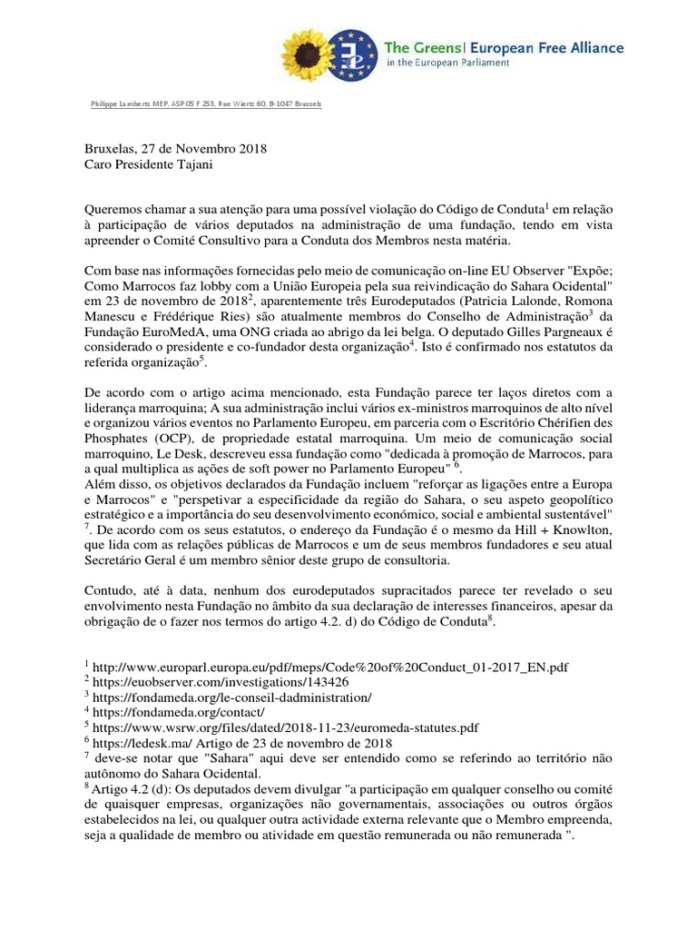 em 23 de novembro de 20182, aparentemente três Eurodeputados (Patricia Lalonde, Romona