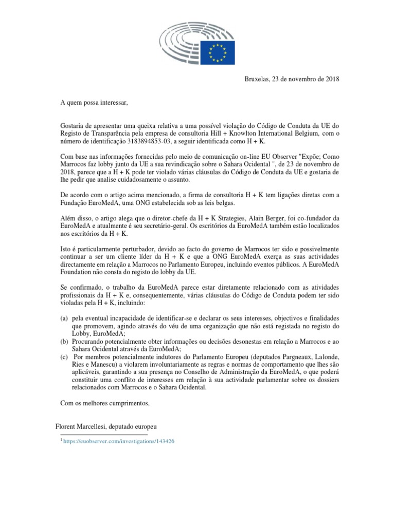 directamente em relação a Marrocos no Parlamento Europeu, incluindo eventos públicos. A EuroMedA