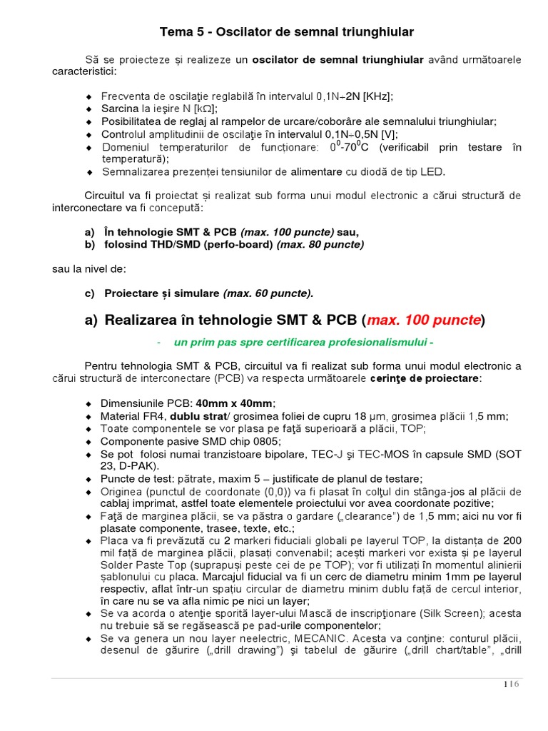 a) Realizarea în tehnologie SMT & PCB (max. 100 puncte)