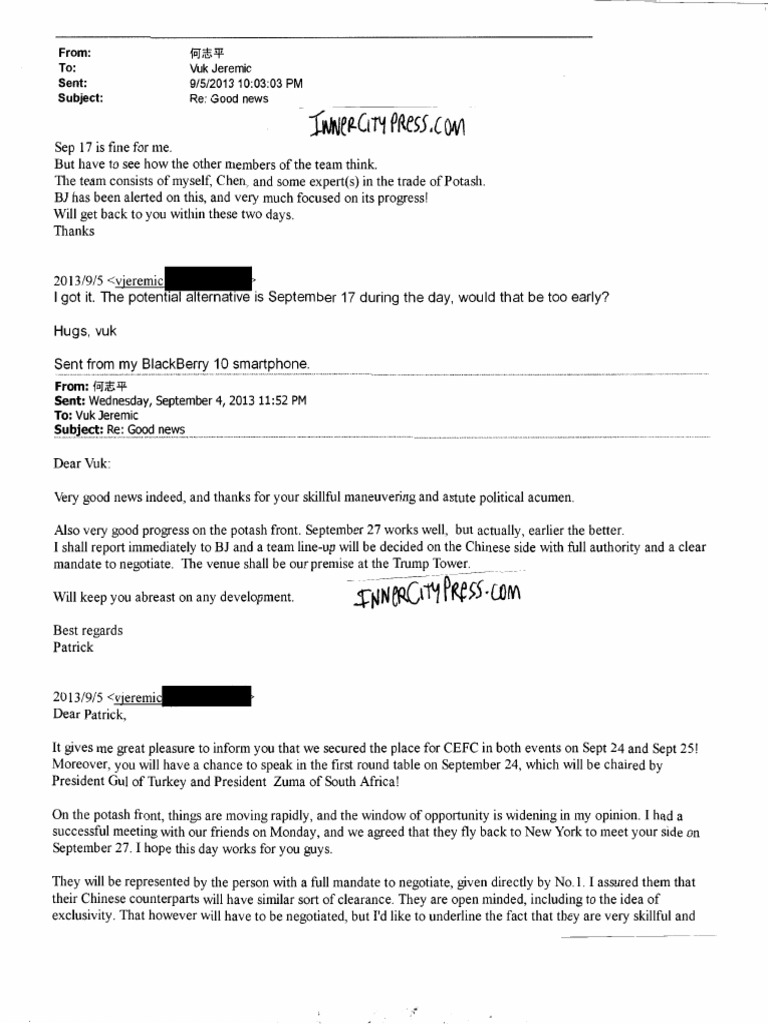 Also very good progress on the potash front. September 27 works well, but actually, earlier the better.